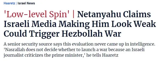 Haaretz'e konuşan diğer güvenlik kaynakları ise bu iddiayı reddederken Hizbullah lideri Nasrallah'ın "İsrailli bir gazeteci başbakanı eleştirdiği için savaş başlatıp başlatmayacağına karar vermiyor." ifadelerini kullandı.