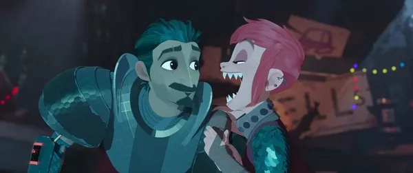 Netflix'in Nimona'sının bir sahnesinde Ballister, Nimona'ya şekil değiştirmenin nasıl bir his olduğunu soruyor.