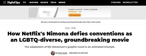 Haziran ayında yayınlanan Nimona isimli yeni film de şaşırtmadı. Nimona isimli animasyon filmin ana karakterleri eşcinsel.