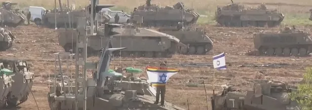 İsrail ordusu son günlerde Gazze sınırına yakın bölgelerde çok sayıda tank, obüs ve zırhlı araçlarla yığınak yapıyor.