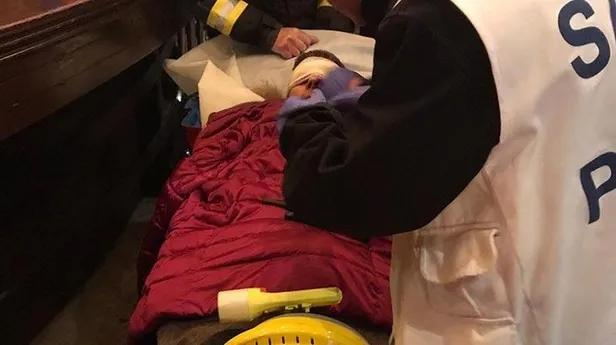 Maske camının kırılmasıyla kanlar içerisinde kalan Yalçın'a ilk müdahale olay yerindeki sağlık görevlilerince, ardından doktorlar tarafından ambulansta yapıldı.