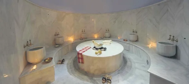 Hamamdaki servisler ise yine Türkçe ifadelerden çalındı. En dikkat çekeni ise "Gelin hamamıydı." Bu hamamın paketi 200 Euro'dan (823 TL) satıldı. Uyanık komşu araya "Klasik Hamam" adı altında ise adeta Türk hamamının uygulamalarını sattı. 25 Euro'luk (102 TL) bu paket, "Geleneksel Hamam" başlığı ile tanıtıldı. Ardından şu ifadeler kullanıldı: "Geleneksel kese hizmeti sunuluyor. Müşteriler suyun sesiyle rahatlıyor ve gün yorgunluğunu atabiliyor. Lif kabağından kese, cildi yeniliyor. Dinlenmek isteyenler çay molası veriyor." İşletme sahibi temel serviler dışında selülit karşıtı masajlar ile arınma hizmeti de verdiklerini açıkladı. Hamamın 6 aylık ve 10 aylık paket programlarıyla kullanıldığı vurgulandı. Bu kapsamda hamamın fiyatının 500 Euro (Yaklaşık 3 bin TL) olduğu anlatıldı.