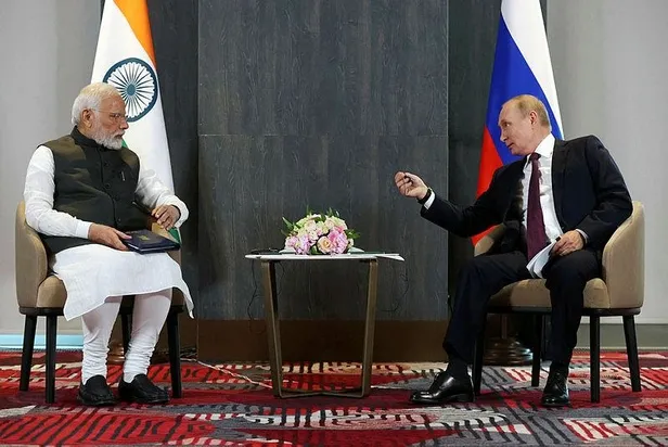 Kremlin'den yapılan açıklamaya göre Putin, Hindistan Başbakanı Narendra Modi ile Özbekistan'ın Semerkant şehrinde yapılan Şanghay İşbirliği Örgütü (ŞİÖ) zirvesi kapsamında bir araya geldi.