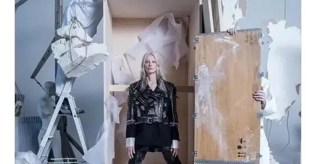 Fotoğraflardan birinde bir manken beyaza sarılmış bir mankeni taşırken, bir diğerinde bir büst yerde yatarken, bir diğerinde ise kolları kesik bir manken görülüyor.