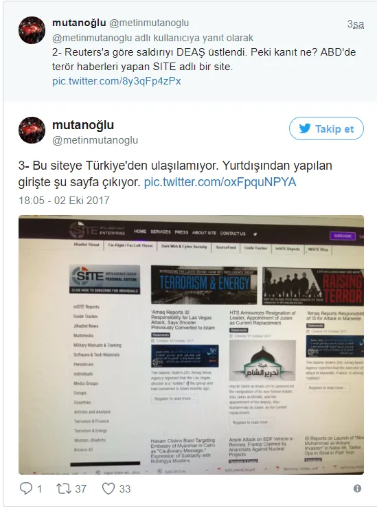 Anadolu Ajansı Genel Yayın Yönetmeni Metin Mutanoğlu sosyal medya hesabından bu duruma dikkat çekerek "Reuters'a göre saldırıyı DEAŞ üstlendi. Peki kanıt ne? ABD'de terör haberleri yapan SITE adlı bir site. Bu siteye Türkiye'den ulaşılamıyor. Yurtdışından yapılan girişte şu sayfa çıkıyor. Siteye göre DEAŞ'ın yayın ağı AMAG saldırıyı örgütün üstlendiğini duyurdu. Peki nerede? Amag uzun süredir görülemiyor. Eğer DEAŞ bunu sanal alemde üstlenebiliyorsa bu da ayrı bir soru işareti. Zira ID'lerinden kolayca bulunmaları lazım." ifadelerini kullandı.