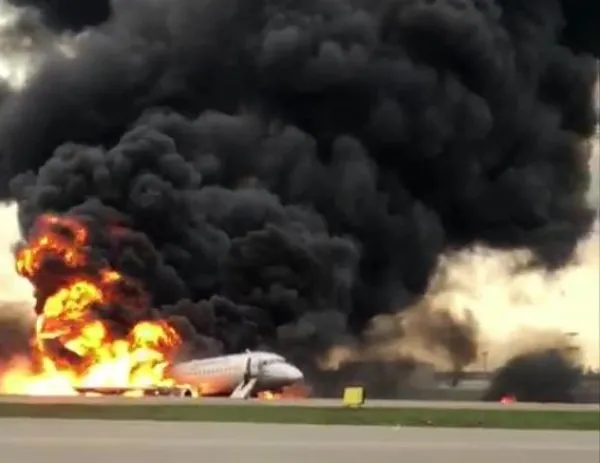 Şeremetyevo Havalimanı'ndan yapılan açıklamada, "5 Mayıs'ta Moskova saatiyle 18.32'de havalimanında Aeroflot havayolu şirketinin SSJ100 yolcu uçağında yangın çıktı. Uçak 18.02'de Moskova-Murmansk güzergahında planlı rejimde kalkış yaptı. Kalkışın ardından mürettebat teknik hata raporu verdi ve havalimanına dönme kararı aldı. Uçakta 73 yolcu ve 5 mürettebat bulunuyordu. Moskova saatiyle 18.30'da yolcu uçağının piste 'sert' bir iniş yapmasının ardından yangın çıktı" denildi.