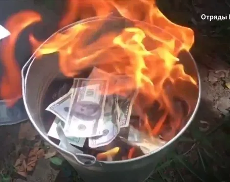 Videonun ilerleyen kısımlarında ise bir başka grubun açıklama yaparak ABD'ye tepki gösterdiği ve içinde ateş yanan bir kovaya ABD dolarları attığı görülüyor. Kadınların yanan kovayı dolarlarla doldurduğu sırada "Bizim dolarla işimiz yok, rubleyi seviyoruz" dediği duyuluyor.