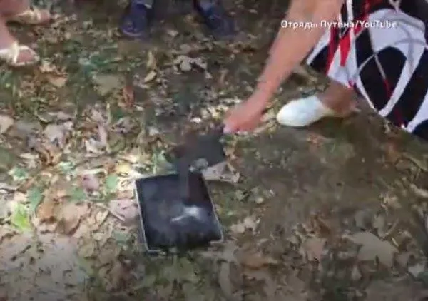 Rusya'da Putin destekçisi bir grup, bir araya gelerek bir video hazırladı. Bu videoda ABD'ye tepki öne çıakrken Washington'un uyguladığı politikalara tepki gösterildi. Videoda bir grup kadının elinde Apple marka tableti parçaladığı görülürken, kadınlardan birinin hırsını alamayarak telefona silah ile vurduğu görülüyor.