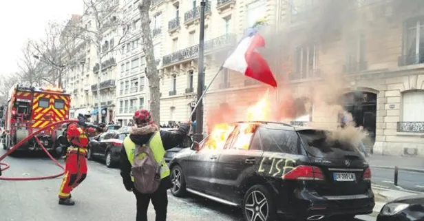 Sarı yelekliler frene değil gaza bastı. Paris sokaklarındaki milyon dolarlık arabaları yaktı.