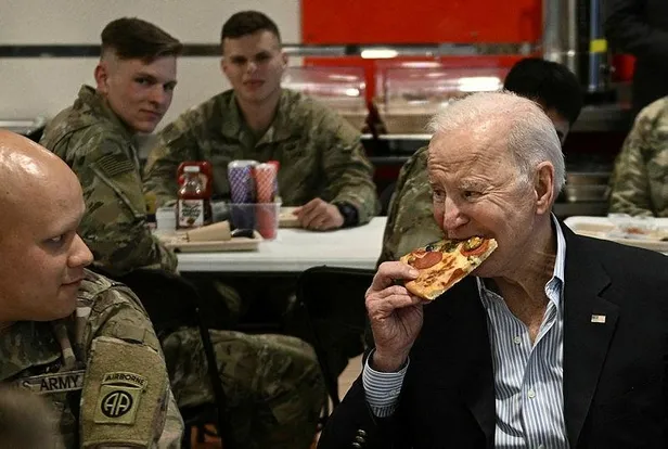 ABD Başkanı Joe Biden, Polonya'da görev yapan ABD askerleriyle fotoğraf çektirdi ve pizza yedi.