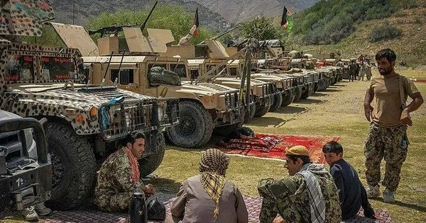 Sosyal medyada, Taliban savaşçılarını, M4 karabinaları ve M16 tüfekleriyle Amerikan yapımı Humvee ve zırhlı araçlarla gösteren fotoğraflar yayınlanıyor.