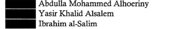 Haberde, Abdulla Mohammed Alhoeriny'nin, Riyad'da istihbarat işlerinden sorumlu üst düzey bir generalin kardeşi olduğu bildirilirken, diğer iki ismin belirsiz olduğu kaydedildi.
