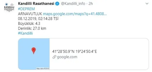 2019.12.08 02:14:28 41.4808 19.4140 27.0 -.- 4.2 4.3 ARNAVUTLUK İlksel
