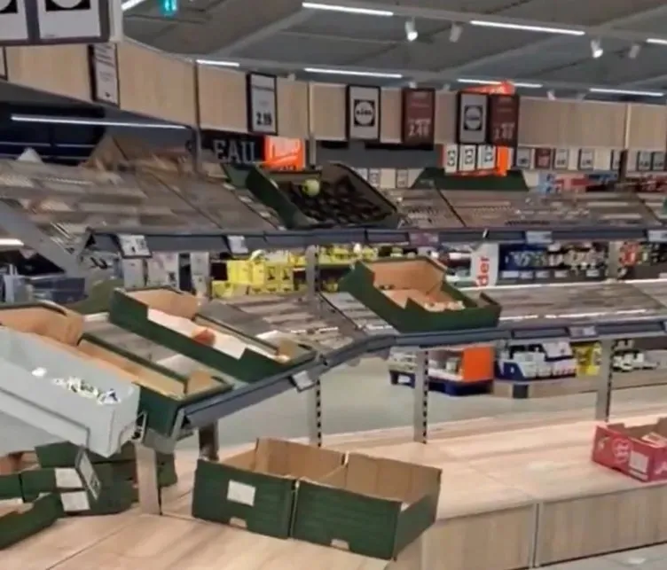 Sosyal medyada yayılan görüntülerde marketlerin de boş kaldığı görüldü. "Çiftçi yoksa ürün de yok" pankartları açan göstericiler, tedarik akışını da kesintiye uğrattı.