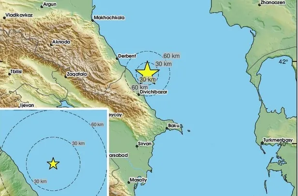 Son dakika haberi... Hazar Denizi açıklarında 5.7 büyüklüğünde bir deprem meydana geldi. Sarsıntı, Azerbaycan'ın Haçmaz ili başta olmakla başkent Bakü ve çevre illerde de hissedildi.