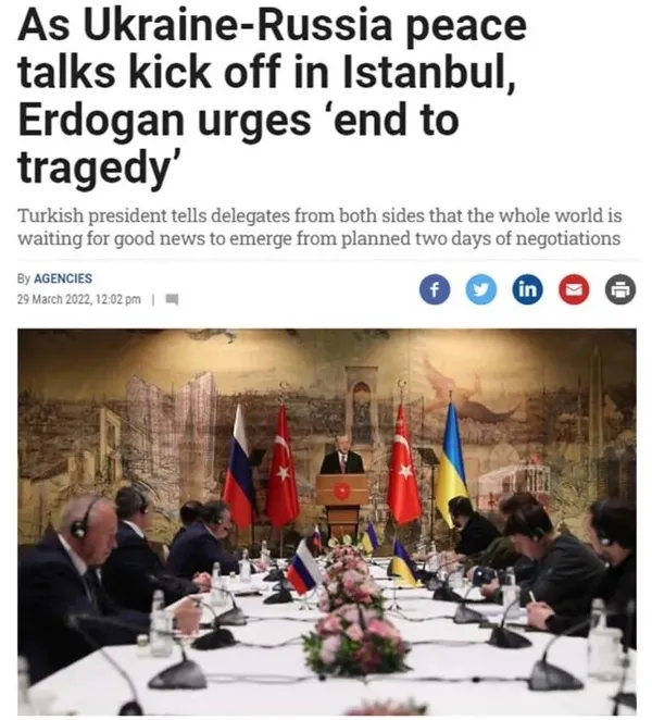 Rus ve Ukraynalı müzakerecilerin Salı günü İstanbul'da yüz yüze görüşmelere başladı ve ev sahibi Türkiye'nin Cumhurbaşkanı Recep Tayyip Erdoğan, taraflara "bu trajediye bir son vermeye" çağrısında bulundu. İstanbul'daki Dolmabahçe sarayında yapılan yüz yüze görüşmeler, tahminen 20 bin kişinin ölümüne ve 10 milyondan fazla kişinin evlerini terk etmesine neden olan bir savaşı sona erdirmeyi amaçlıyor.