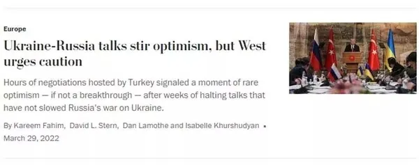 WASHINGTON POST: UKRAYNA-RUSYA GÖRÜŞMELERİ İYİMSERLİĞİ ARTIRIYOR ANCAK BATI İHTİYATLI OLMAYA ÇAĞIRIYOR