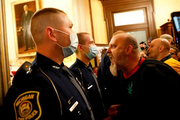 Silahlı protestocular tecrit kararlarına meydan okuyarak Michigan Eyalet Meclisi'ni bastı. Hal böyle olunca Michigan'daki siyasetçiler işe kurşun geçirmez yelek giyerek gitmeye karar verdi.