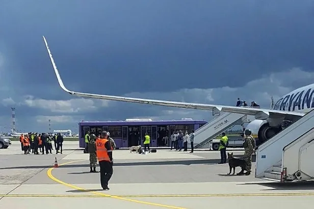 Yunanistan'dan Litvanya'ya giden Ryanair'e ait 123 yolcu taşıyan uçak, bomba ihbarı yapıldığı iddiasıyla Belarus hava sahasındayken acil iniş yapmıştı.
