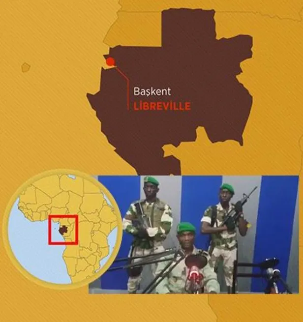 Afrika kıtasında sular durulmuyor... Nijer'deki darbenin etkileri sürerken Gabon'da bir grup üst düzey ordu subayı ulusal televizyona çıktı ve iktidarı ele geçirdiklerini duyurdu. Cuntacılar genel seçimlerin iptal edildiğini, tüm sınırların bir sonraki duyuruya kadar kapatıldığını, cumhuriyetin tüm kurumlarının feshedildiği ilan etti. Başkent Librevil'de silah sesleri duyuldu. Askerler tarafından alıkonulan Cumhurbaşkanı Ali Bongo, evinden destekçilerine yardım mesajı gönderdi. Öte yandan Dışişleri Bakanlığı'ndan "Gabon'da yaşanan gelişmeleri yakından ve dikkatle takip ediyoruz. Ülkede barış ve istikrarın yeniden tesisini temenni ediyoruz" açıklamasını yaptı.