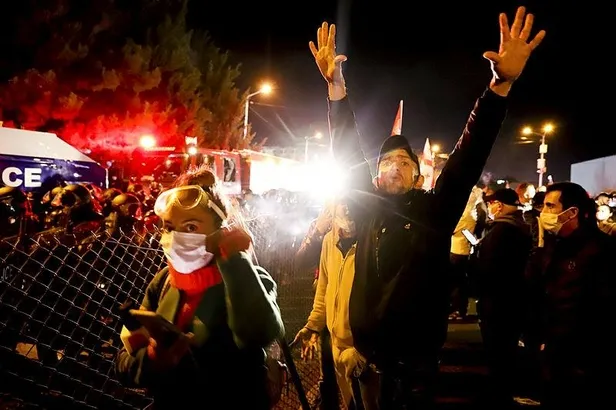 Güvenlik güçleri ile göstericiler arasında arbede yaşandı. Güvenlik güçleri tazyikli su kullanarak göstericilere müdahale etti.