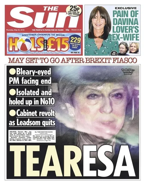 İngiliz basını İngiltere Başbakanı May'in istifa etmesinin beklendiğini yazdı. Bulvar gazeteleri 'arka koltuktaki gözyaşları' manşetleriyle çıktı.