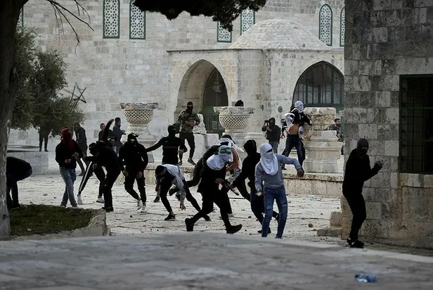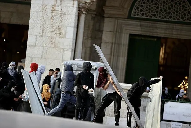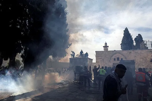 İşgal altındaki Doğu Kudüs'te bulunan Mescid-i Aksa'nın avlusunda toplanan Filistinli bir grup genç, polisin bulunduğu noktaya taş attı. İsrail polisi, Mescid-i Aksa girerek yoğun biçimde ses bombası ve kauçuk kaplı mermiyle içeridekilere müdahale etti.