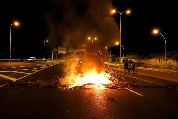 Yola barikat kuran ve lastik yakan göstericiler yoldan geçmek isteyen bazı araçlara saldırdı. Bazı araçları da ateşe veren göstericiler, kapattıkları yollara kaldırım taşlarını yığdı.