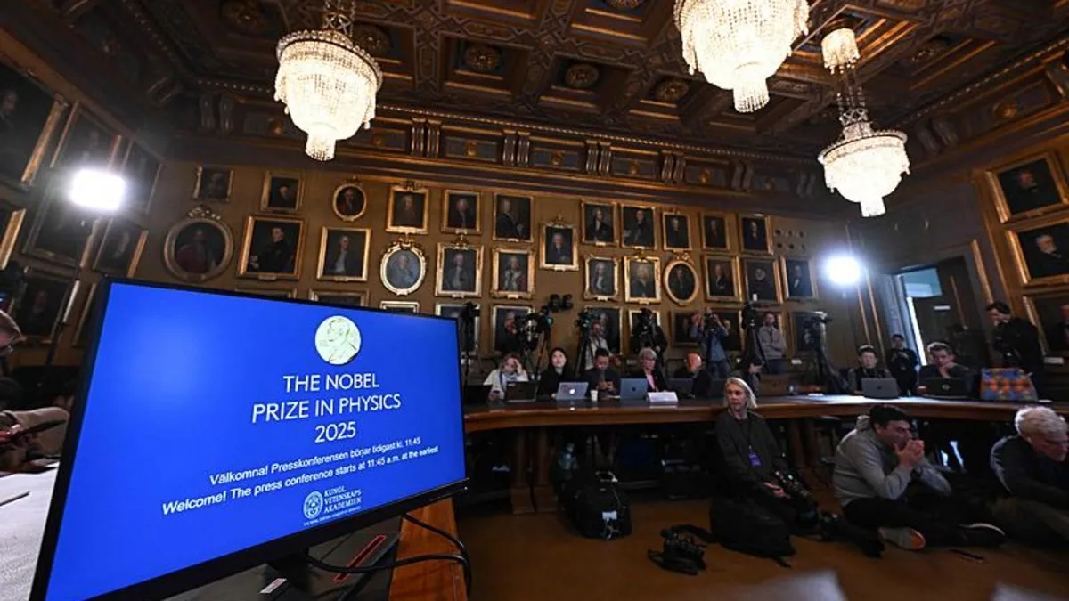İsveç Kraliyet Bilimler Akademisi'nde düzenlenen basın toplantısında, 2025 Nobel Fizik Ödülü'nün sahipleri açıklandı.