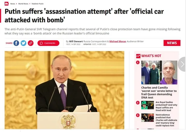 İngiliz basınında yer alan ve Kremlin Sarayı'na dayandırılan habere göre Rusya Devlet Başkanı Vladimir Putin'in limuzinine bombalı saldırı düzenlendiği iddia edildi.