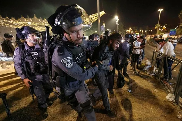 Bölgede tansiyonun artması üzerine İsrail polisi, Şam Kapısı önündeki oturma alanında bulunan Filistinlilere ses bombalarıyla müdahale etti.