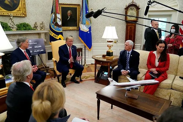 Beyaz Saray'da Teksas Valisi Greg Abbott ile bir araya gelen Trump, görüşme öncesi Oval Ofis'te gazetecilere açıklamalarda bulundu.