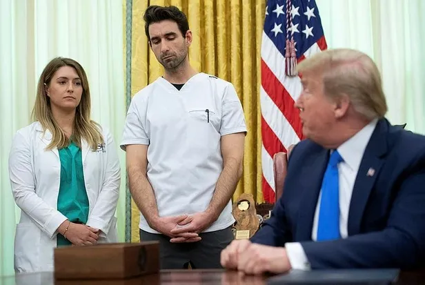 Ulusal Hemşireler Günü dolayısıyla Oval Ofis'te Kovid-19 salgınıyla mücadele için çalışan hemşireler ile bir araya gelen Trump, burada gazetecilere açıklama yaptı.