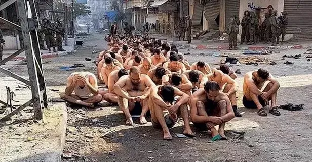 İsrail ordusunun alıkoyduğu ve iç çamaşırlarına kadar soyulmuş, gözleri bağlı ve elleri kelepçeli şekilde diz üstü çöktürülen Filistinli sivillere ait fotoğraf ve görüntüler günlerdir yayınlanıyor.