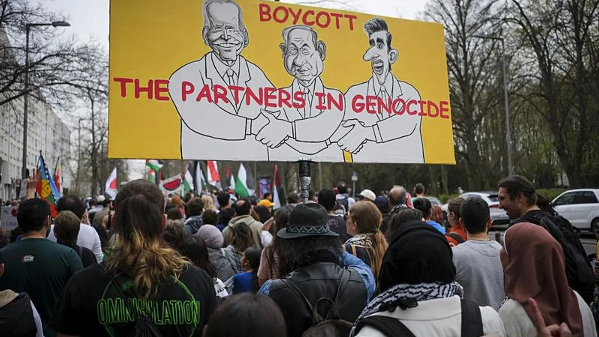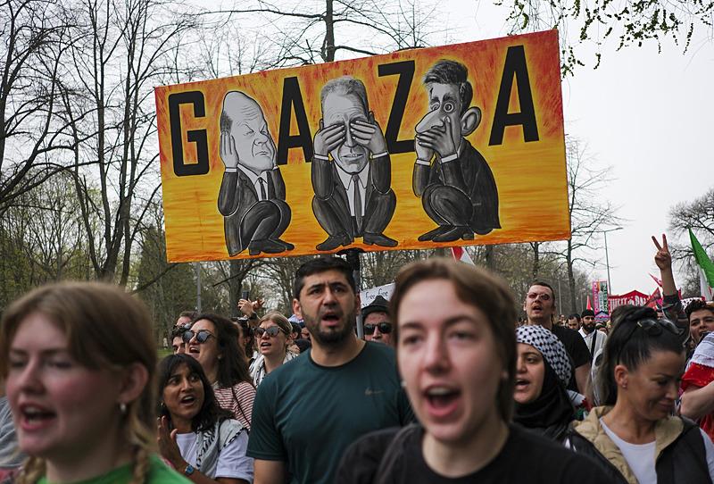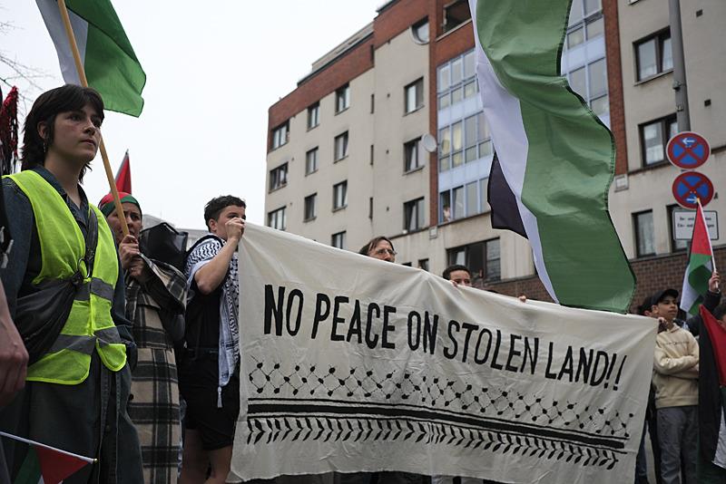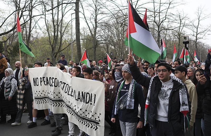 Almanya’nın başkenti Berlin’de binlerce kişi Filistin'e destek için bir araya geldi. Soykırımcı İsrail’in Filistin topraklarını işgal etmesi ve Gazze’ye yönelik saldırıları protesto edilirken, “Çalınan topraklarda barış olmaz” yazan döviz ve pankartlar dikkat çekti.