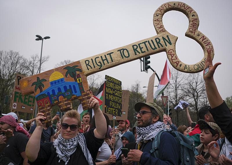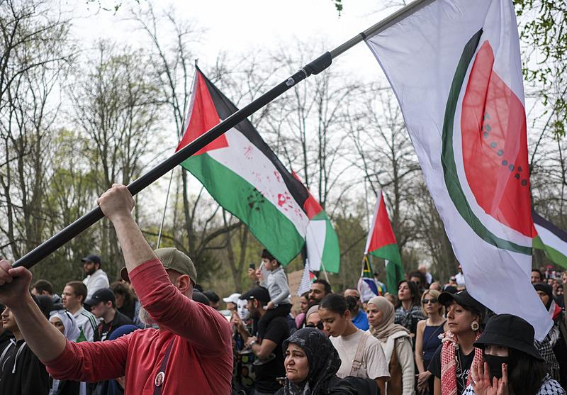 Almanya'nın başkenti Berlin'de, İsrail'in Filistin topraklarını işgal etmesi ve Gazze'ye yönelik saldırıları protesto edildi.