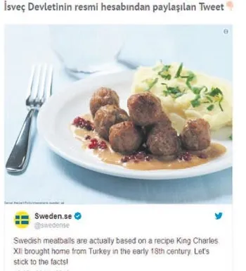 İsveç devletinin Twitter’dan yaptığı, “İsveç köfteleri, aslında Kral 12. Karl’ın Türkiye’den eve getirdiği tarife dayanıyor. Gerçeklere bağlı kalalım” itirafı dünyanın gündemi oldu. ABD’nin ünlü Newsweek dergisi haberi birinci sayfasında duyurdu