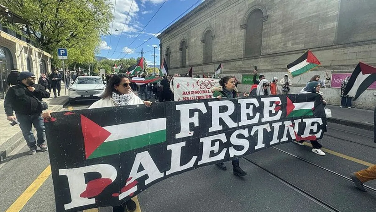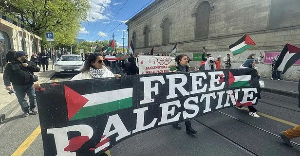 Soykırımcı İsrail ve destekçisi ABD'ye tahammül kalmadı. İsviçre'nin Cenevre kentinde binlerce kişi Filistin'e destek yürüyüşü düzeneyerek, katil Netanyahu ve Joe Biden'a tepki gösterdi. Yaklaşık 2 saat süren yürüyüş Birleşmiş Milletler (BM) Cenevre Ofisi önünde son buldu.