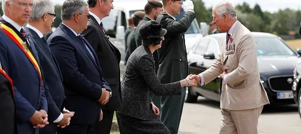 Ziyarette hazır bulunan Başbakan Theresa May, Kraliyet Ailesi'nden Prens Charles, Galler Prensi William ve eşi Kate Middleton ile tokalaşırken eğildi.
