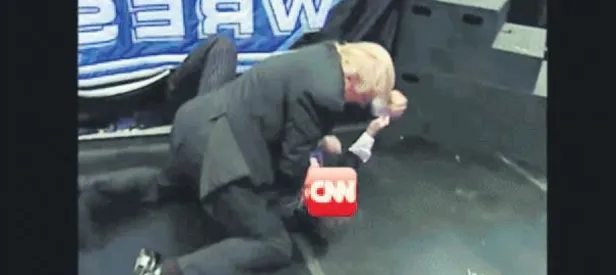 Trump, başkan olmadan önce gittiği Amerikan güreşi gösterisindeki bu görüntüsüne CNN logosu ekledi.