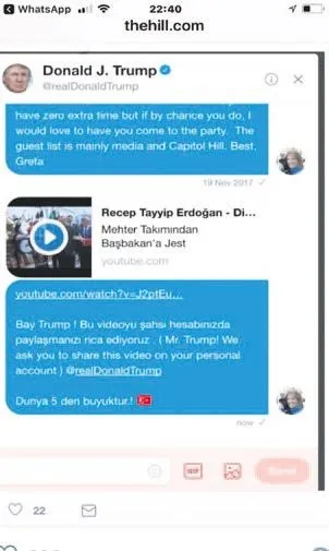 Türk hacker grubu Ayyıldız Tim, eski Fox News sunucuları Eric Bolling ve Greta Van Susteren'e ait Twitter hesaplarını hackleyerek Cumhurbaşkanı Recep Tayyip Erdoğan'ı destekleyen mesajlar paylaştı. İki hesaptan da "I love Turkiye" ve "Dünya beşten büyüktür" paylaşımları yapıldı. İki kişinin de Donald Trump'ın Twitter'da takip ettiği 45 kişi arasında olduğu görülürken, bu hesaplar üzerinden Trump'a mehter marşı videoları gönderildi.