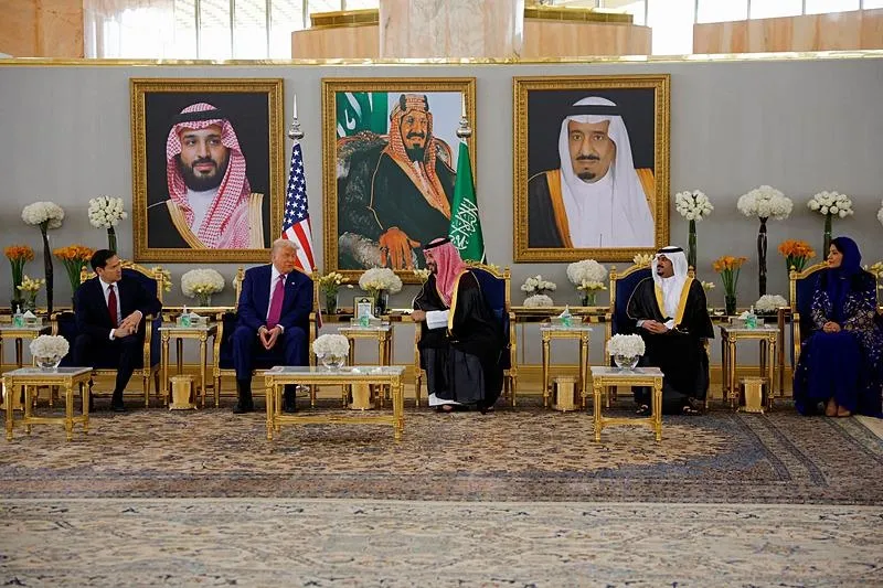 ABD Başkanı Donald Trump, 13-16 Mayıs tarihleri arasında üç ülkeyi kapsayan Orta Doğu turunun ilk durağı olan Suudi Arabistan’a ziyarette bulundu. Trump ve Suudi Veliaht Prensi Muhammed bin Selman yaklaşık bir saatlik bir görüşme gerçekleştirdi. İş dünyasının önde gelen isimlerinin de olduğu görüşmede Tesla ve SpaceX'in CEO'su Elon Musk da bulunuyordu. Trump'ın kendisine ikram edilen Suudi kahvesini içmediği anlar gündem olurken Selman'a övgüleri ise çok konuşuldu. Gündeme damga vuran zirvede stratejik ortaklık anlaşması ve ardından tarihin en büyük silah anlaşmasının yapıldığı bildirildi. Trump Suudi Arabistan'da Prens Muhammed bin Selman ve Suriye Cumhurbaşkanı Şara ile bir araya gelirken Başkan Erdoğan'ın da online olarak katıldığı toplantıda yer aldı. ABD Başkanı Riyad gezisini Suudi Arabistan'a övgüler dizerek tamamladı.