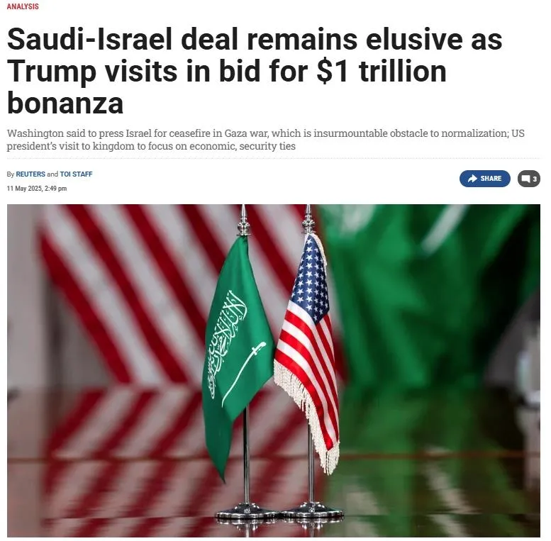 Trump Riyad’da görüşmelere devam ederken İsrail basının manşetlerinde ise endişe hakim. The Times of Israel, Trump ve Selman’ın Riyad’da yapmasının beklendiği 1 trilyonluk ticaret anlaşmasını yazdı. Trump’ın Riyad’da görkemli törenler ve 1 trilyon dolarlık yatırım ihtimaliyle karşılandığını belirten The Times of Israel, Gazze’nin Suudi Arabistan’ın İsrail’le normalleşmesini engellediğini yazdı.