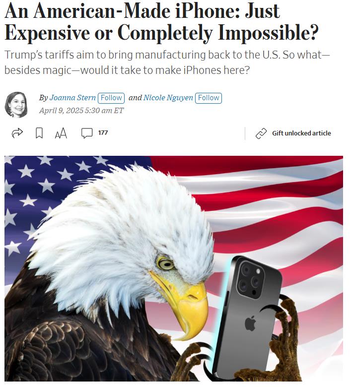 Beyaz Saray basın sözcüsü Karoline Leavitt, salı günü düzenlediği basın toplantısında Trump'ın iPhone üretimini ABD'ye getirmek için "işgücünün ve kaynaklarının olduğuna inandığını" söyledi. Beyaz Saray üretimi ABD'ye taşıma planları yapsa da büyük şirketleri büyük bir yıkım bekliyor. Pek çok ABD gazetesinde görüşüne yer verilen uzmanlara göre bunu yapmak yıllar alacak ve iPhone fiyatları ise fırlayacak.