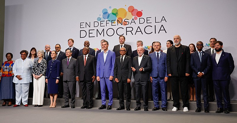 Sanchez, "Demokrasiyi hafife alamayız. Bugün, tehlikeli şekilde güç kullanımının normalleştiğini görüyoruz. Toplumlarımızda eşitsizlik ve dezenformasyon artıyor. Risk, demokrasinin içten içe yıpranmasıdır. Direnmek yeterli değil. Demokrasiyi güçlendirebileceğimizi önermeli, öncülük etmeli ve göstermeliyiz." ifadelerini kullandı.
