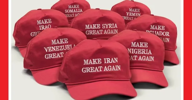 - Dergi kapağında Trump'ın 'Make America Great Again' sloganı yerine İran, Venezuela, Nijerya, Irak, Somali, Suriye ve Ekvador için benzer sloganlar kullanıldı.