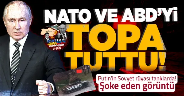 Ukrayna’ya askeri harekat başlattığı için eleştirinin hedefinde olan Putin’den ABD ve NATO’ya sert sözler! Rus tanklarında Sovyet bayrağı