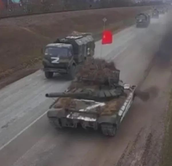 BMD-4 ve NONA tanklarının yanı sıra BTR-D zırhlı personel taşıyıcılarının bulunduğu Rus konvoyunda bazı tankların Sovyetler Birliği bayrağı taşıdığı görüldü.