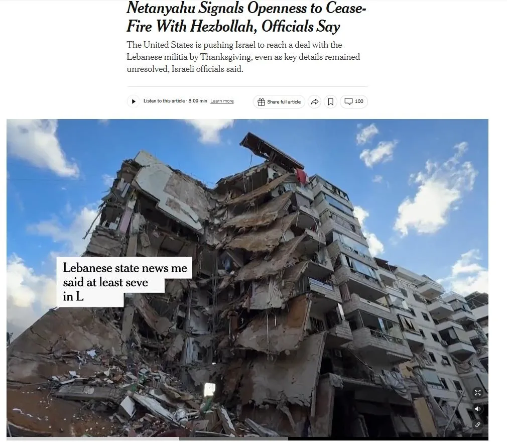 "Herkesin gözü kulağı Lübnan'daki ateşkeste. Lübnan'da Hizbullah-İsrail ile ateşkes yakın demiştik. Bunun birçok nedeni vardı. Geldiğimiz noktada İsrail'in Washington'daki büyükelçisi Danny Danon'un "İlerleme sağlandı. Yarın İsrail kabinesi ateşkes taslağını onaylamak için toplanacak" dedi."