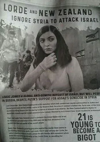 Yeni Zelandalı şarkıcı Lorde'un İsrail'de vereceği konseri iptal etmesi üzerine Washıngton Post'ta şarkıcıyı hedef alan tam sayfa bir ilan yayınlandı.